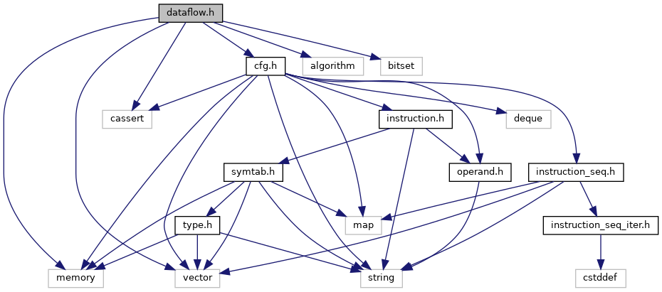 | An instance of Dataflow performs a dataflow analysis on the basic blocks of a control flow graph and provides an interface for querying dataflow facts at arbitrary points. More... | |